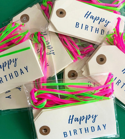 Packs of ten come with twine (Christmas tags) or satin 3mm double sided ribbon to self-tie as desired.